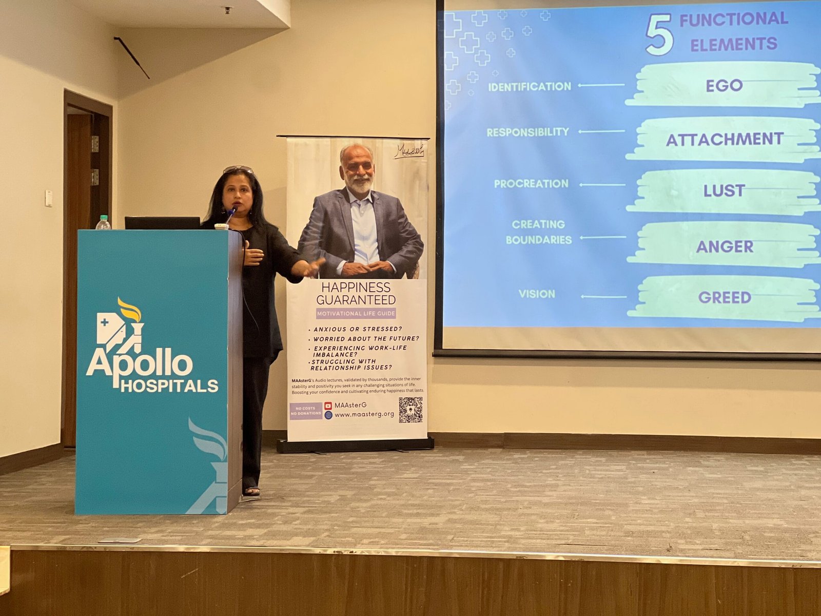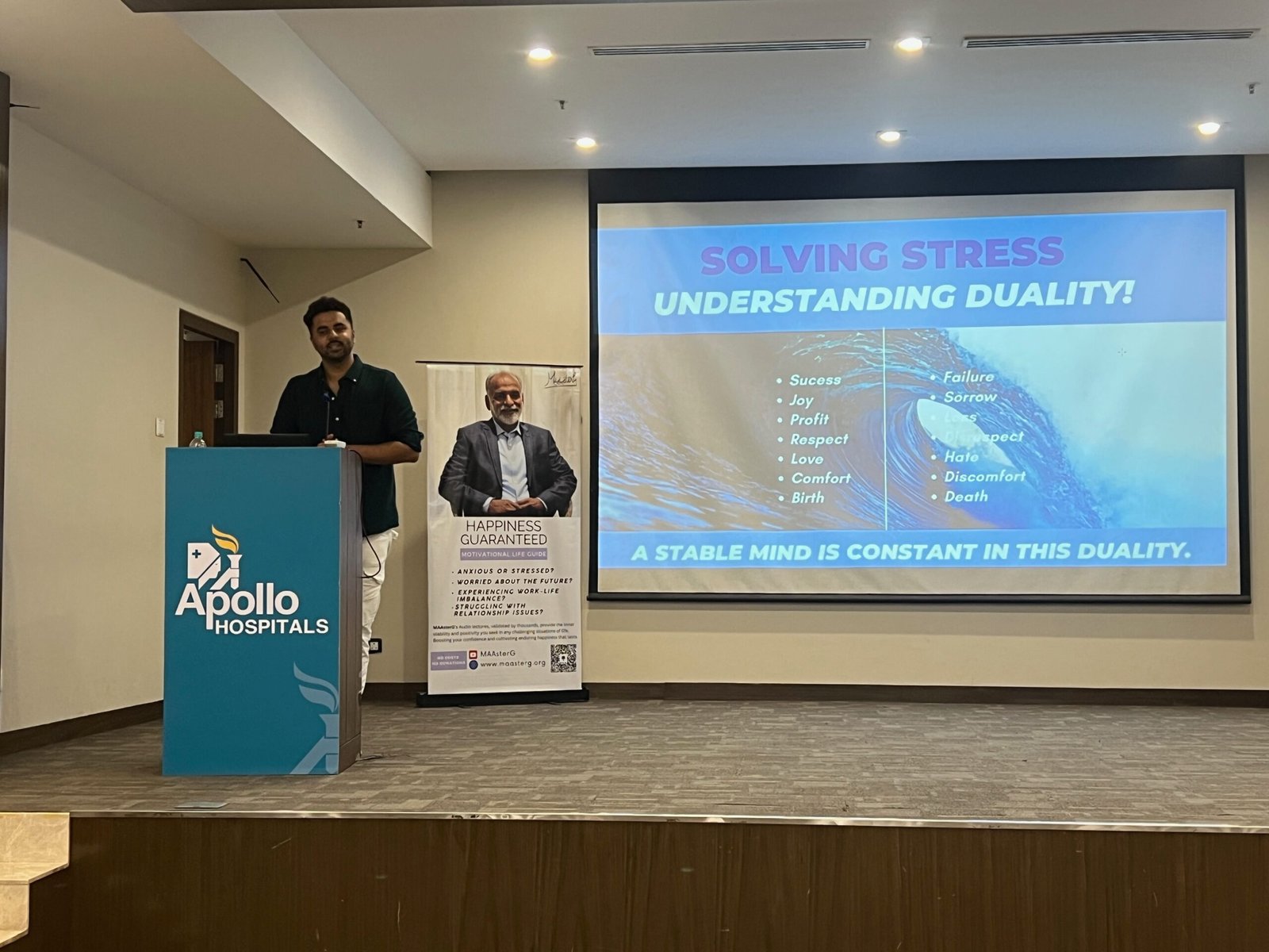 From schools and universities to hospitals and corporate spaces, they carry the message of mental wellness, happiness, stress management, inner peace, clarity and bliss — guiding others to the profound joy that blossoms through listening to MAAsterG’s discourses.