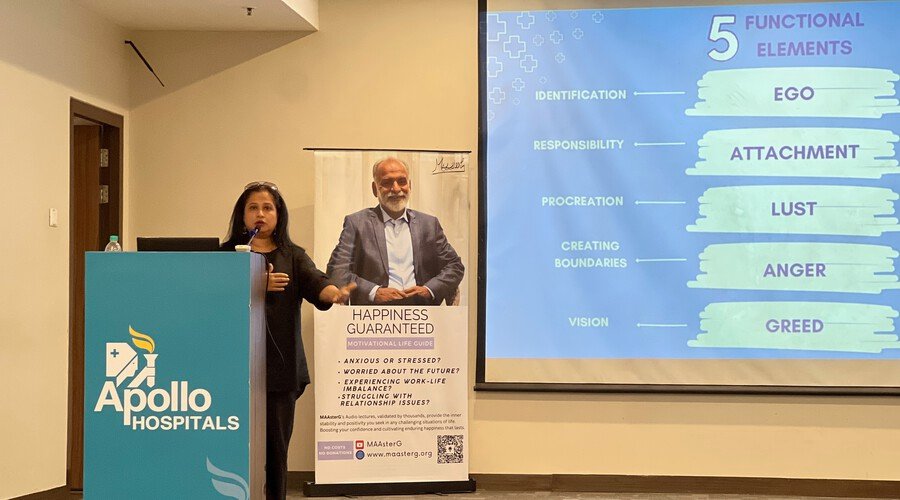 Mumbai’s MAAsterG Community visited Apollo Hospital in Mumbai to share MAAsterG’s inspiring message with the nursing staff and doctors. Through heartfelt conversations, they aimed to uplift the healthcare professionals, offering spiritual wisdom and encouragement to nurture inner peace and resilience amidst their demanding work.